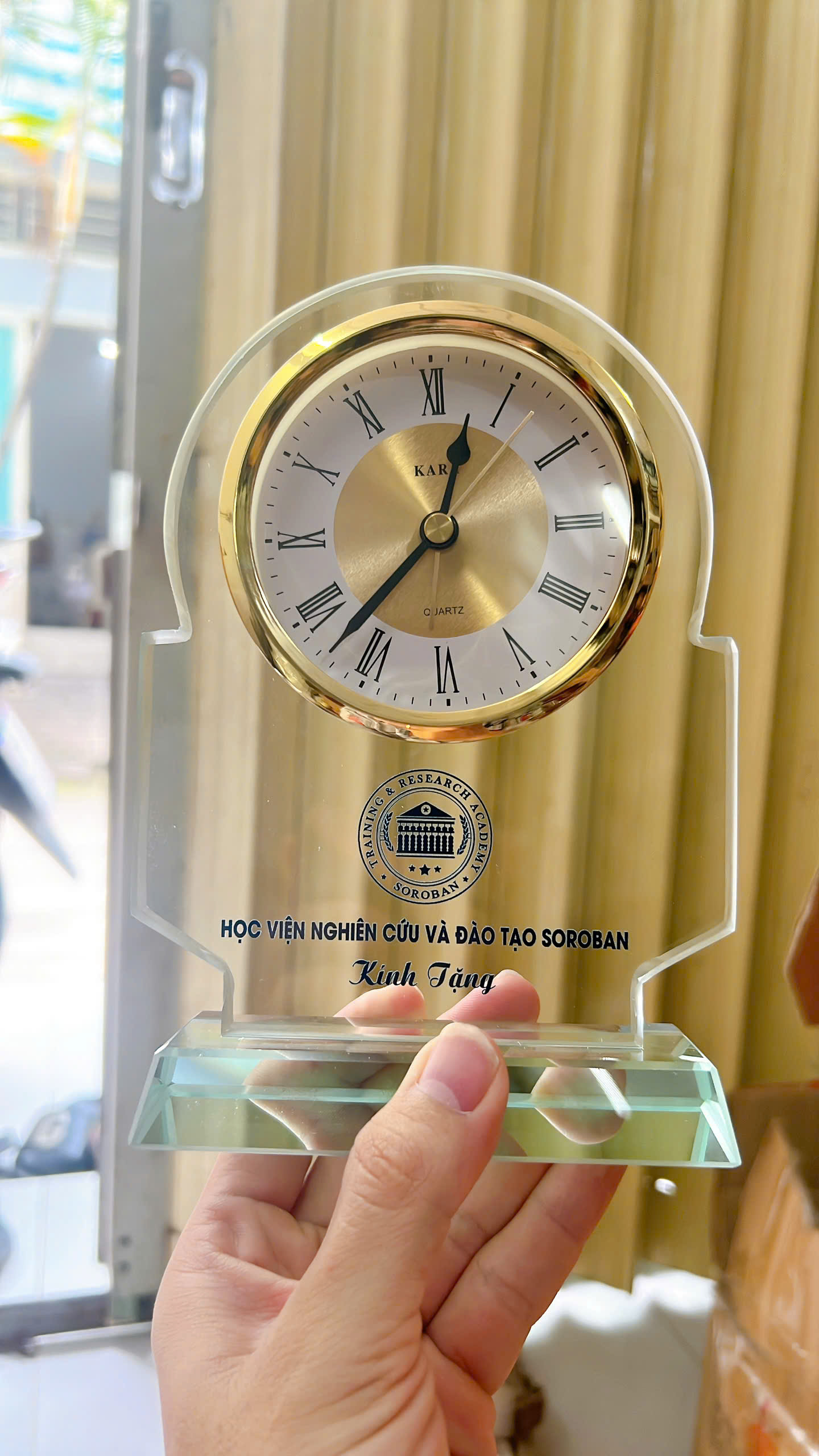 Dù không quá đắt đỏ, nhưng nếu được thiết kế tinh tế và in ấn đẹp mắt, cúp thủy tinh vẫn mang lại cảm giác trang trọng và chuyên nghiệp.